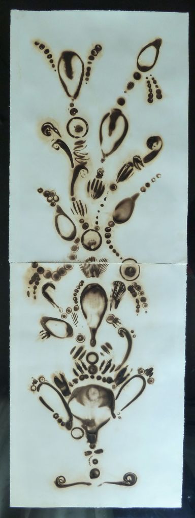 Once the artwork is done at the studio, it takes some work to get it ready- first it is cleaned and glued, then photographed, cataloged, packed and shipped. I am working on one half of the Chandelier pieces here, just cleaning up the ash and smoke.