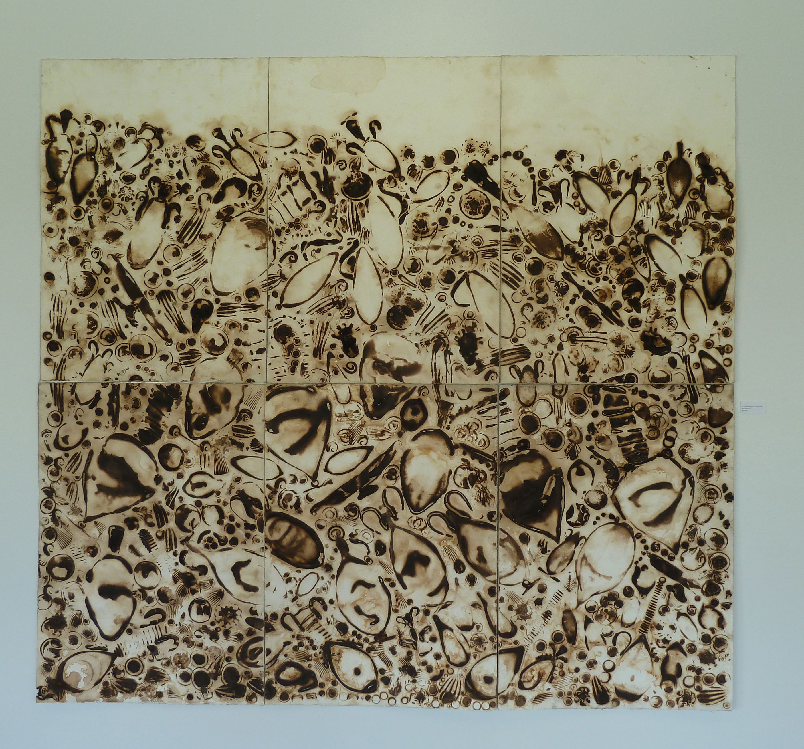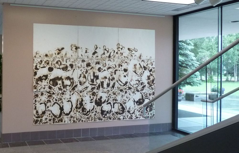 Photos from recent solo show in Anchorage, Alaska, and a review in the local paper. I showed one large wall pieces (9 panels) and 7 smaller pieces.
